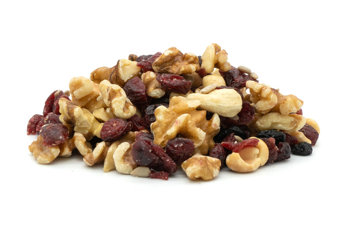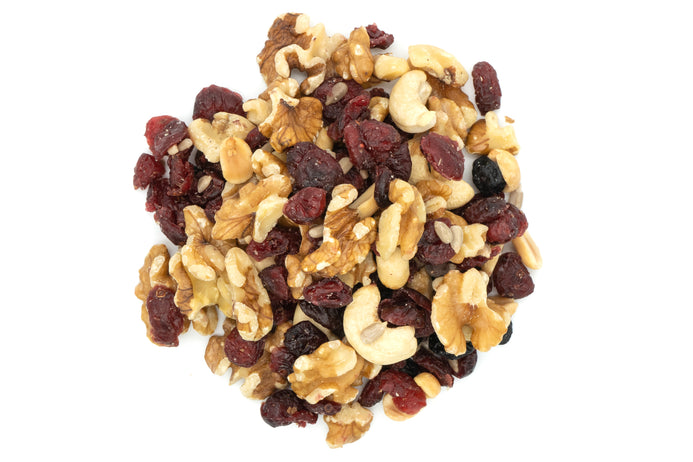 Cranberries, Tart Cherries, Blueberries, Mulberries, Raw Almonds, Raw Pepitas, Raw Sunflower Seeds, Walnuts