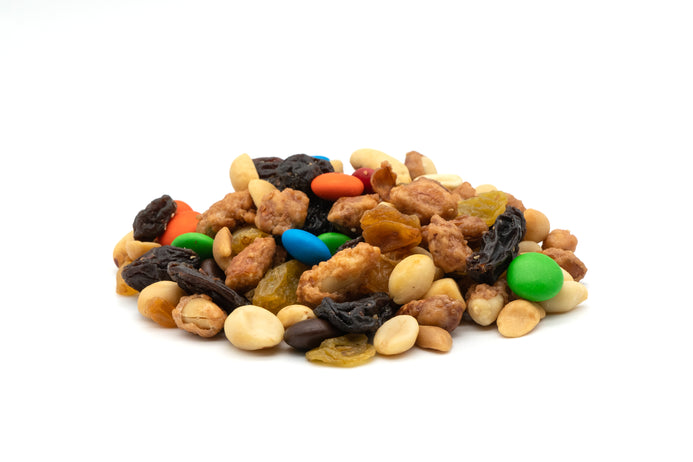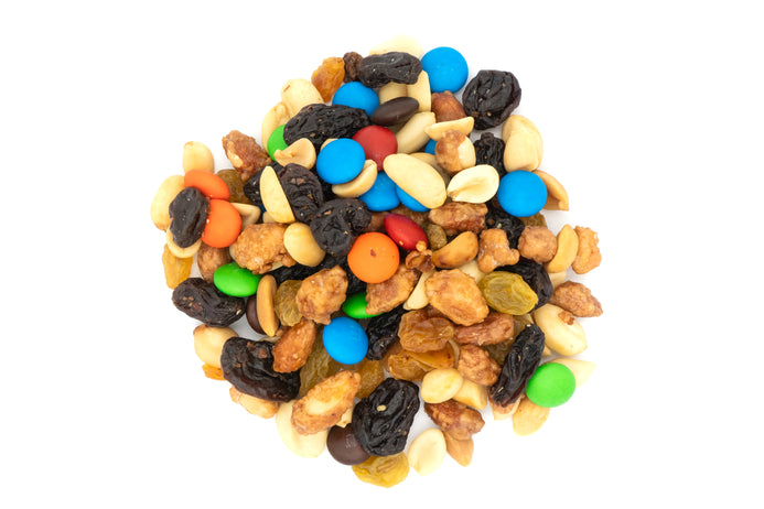 Toffee Peanuts, M&M's, Roasted & Salted Peanuts, Black Raisins, & Golden Raisins