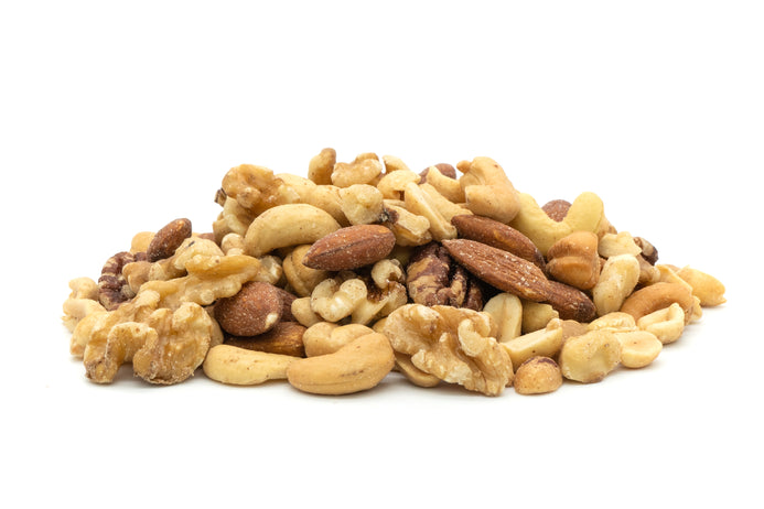 Roasted & Unsalted Almonds, Roasted & Unsalted Cashews, Roasted & Unsalted Pecans, Roasted & Unsalted Peanuts, & Raw Walnuts