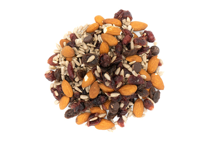 Organic Raw Almonds, Organic Chocolate Chips, Organic Cranberries, Organic Raisins, & Organic Raw Sunflower Seeds